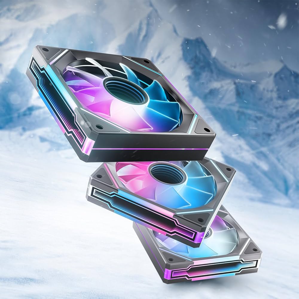 ايشا هورس مراوح كمبيوتر باضاءة RGB من اميسي-5 جي تي، مراوح انفينيتي ميرور ARGB بمحمل HDB بسرعة تصل الى 1800 دورة في الدقيقة مع 24 مصباح LED، مروحة شفرة امامية متوافقة مع اللوحة الام اورا سينك (ليس