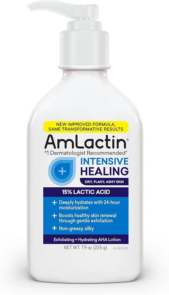 ايه ام لاكتين لوشن الجسم رابيد ريليف لتجديد البشرة الجافة – زجاجة بمضخة سعة 8.8 اونصة – مقشر ومرطب 2 في 1 مع سيراميد و15% حمض اللاكتيك لتخفيف البشرة الجافة لمدة 24 ساعة