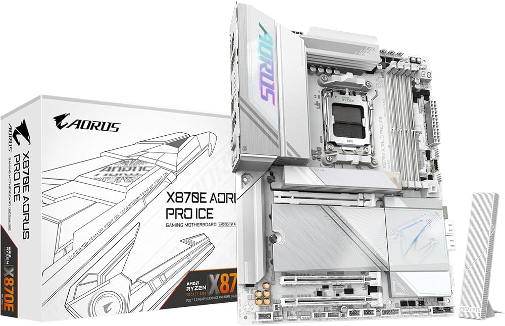 جيجابايت X870E اوروس برو ايس AM5 LGA 1718، ATX، DDR5، 4X M.2، منفذ الملحقات الاضافية السريع 5.0، USB4، واي فاي 7، شبكة LAN 2.5GbE، اي زد-لاتش، كيو فلاش
