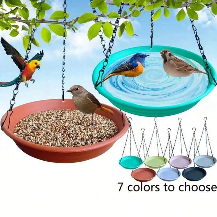 حوض للطيور الخارجي، منصة طعام و حوض استحمام للطيور جديدة للشرفة والحديقة والفناء ، تصميم ثنائي الاستخدام، طعام واستحمام للطيور معًا، ديكور للحديقة والفيلا، تعليق على الشجرة أو الوقوف، مراقبة الطيور، متوفرة بألوان متعددة