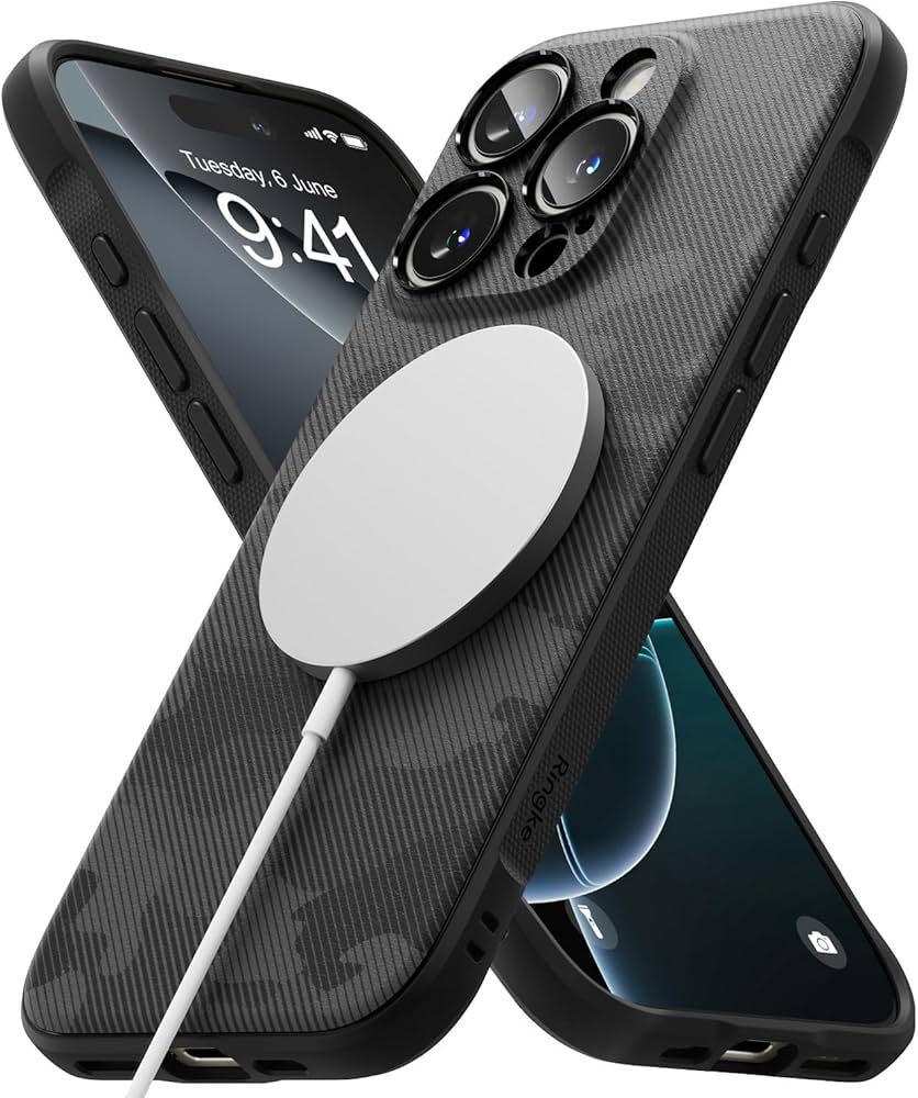 رينجكي غطاء حماية مغناطيسي من اونيكس متوافق مع ايفون 16 برو [مغناطيس قوي] حماية من الدرجة العسكرية من البولي يوريثين الحراري مضاد للصدمات ومتين حماية كاملة لموبايل ايفون 16 برو – اسود مموه