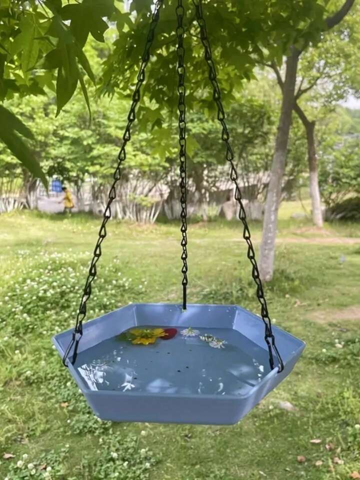 قطعة واحدة / طعام الطيور الخارجي المعلق في الحديقة، وعاء طعام ببنية سداسية للببغاوات مع وظيفة الاستحمام، منظم مغذي طيور الطنان تلقائي المياه