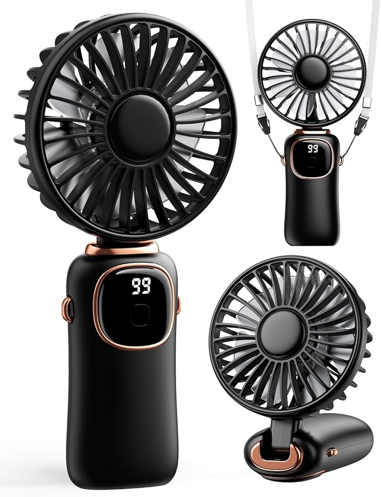 مروحة محمولة باليد من كولدسكاي، مروحة تعمل بالبطارية 4000mAh مع شاشة LED، مروحة صغيرة شخصية 3 في 1 محمولة باليد / الرقبة / المكتب، مروحة مكتب قابلة للطي 90 درجة مع قاعدة، مروحة مكياج 5 سرعات للنساء