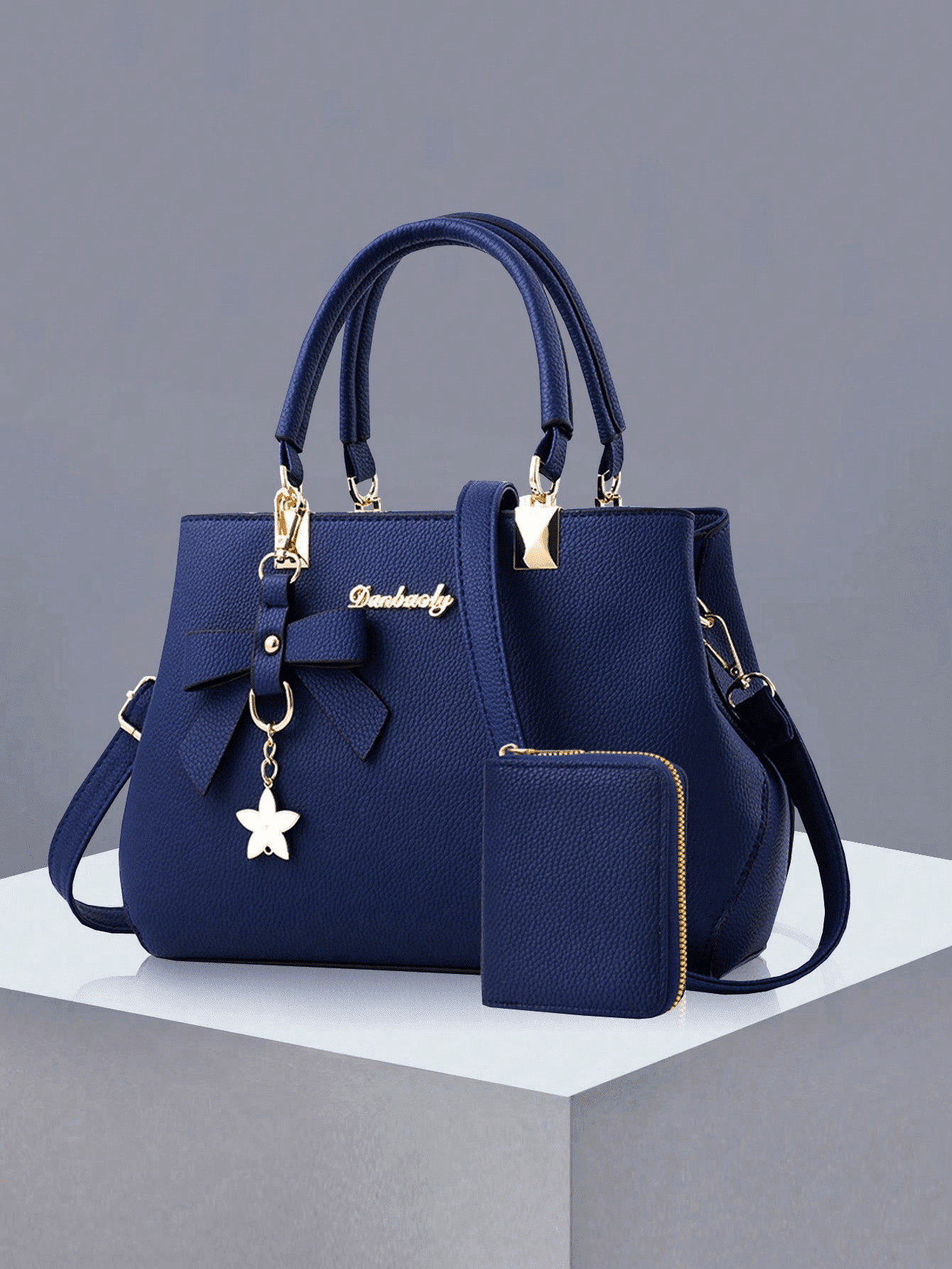 2 قطعة/1 قطعة طقم حقيبة وحافظة نقود للنساء ذات لون سادة، مصنوعة من جلد البولي يوريثان مع علاقة فيونكة، غلق سحاب، هدية مثالية لعيد الأم/عيد الحب، حقيبة أنيقة للنساء بتصميم جمالي ذات سعة كبيرة