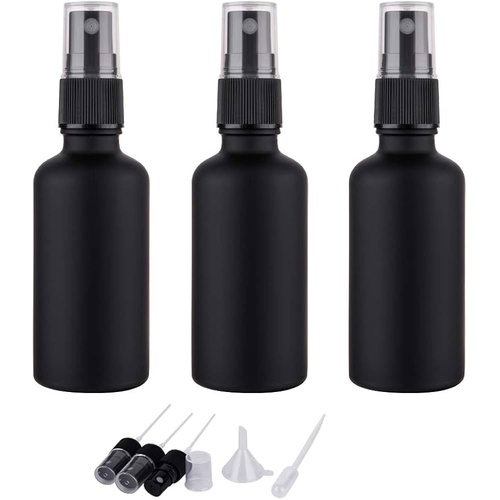 2oz Small Glass Essential Oils Spray Bottles, Fine Mist Frosted Black Spray Bottles (Set Of 3)
