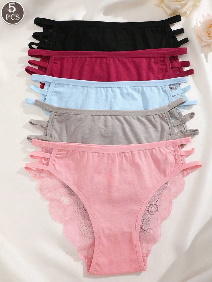 5 قطع/عبوة ملابس داخلية نسائية سيكسي متعددة الألوان من التنجيد و الدانتيل مع تصميم فتحات تهوية وحمالتين يمكن ارتدائها على وسط منخفض