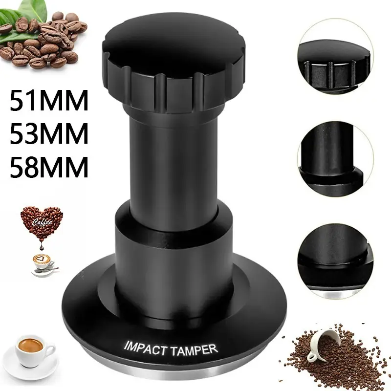 51/53/58mm Coffee Impact Tamper Adjustable Pressure Stainless Steel Coffee Tamper Thread Bottom Constant Pressure Coffee Tamper