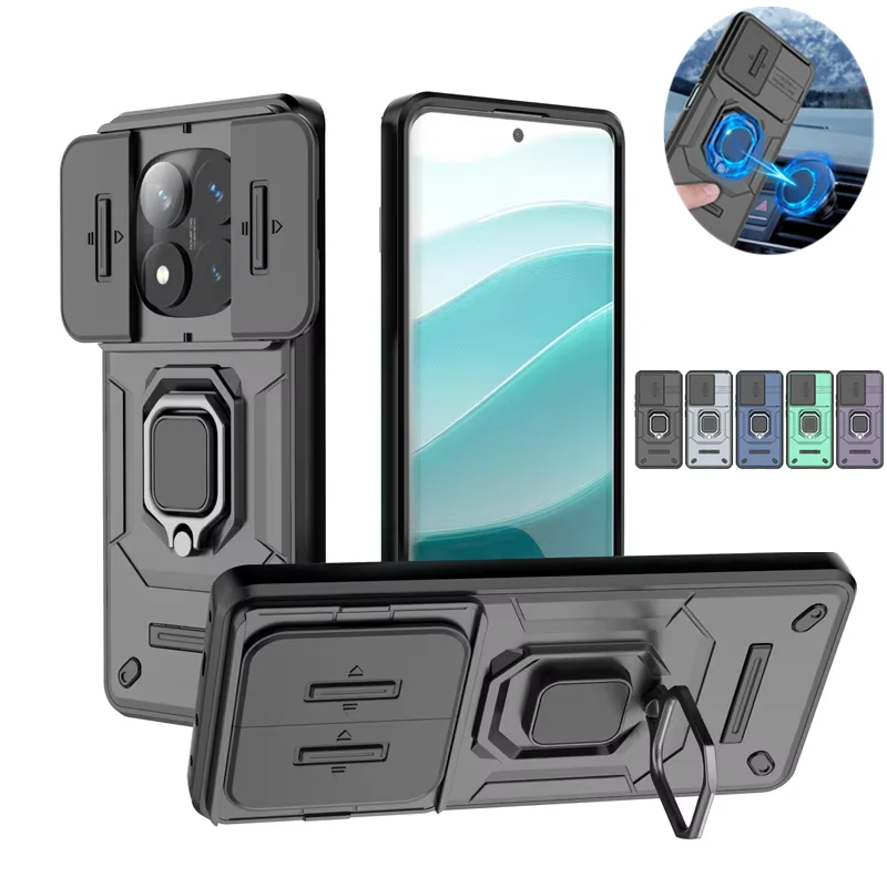 Armor Funda For Xiaomi Redmi Note 14 Pro Plus Note14 5G Case Car Magnetic Ring Protect Cover for Redmy Note 14 Pro+ Lens Capa