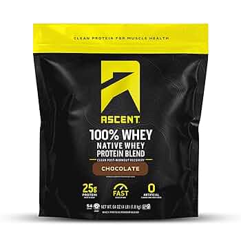 Ascent 100% Whey Protein Powder – Post Workout Whey Protein Isolate, Zero Artificial Flavors & Sweeteners, Soy & Gluten Free, 5.5g BCAA, 2.6g Leucine, Essential Amino Acids, Chocolate 4 lb