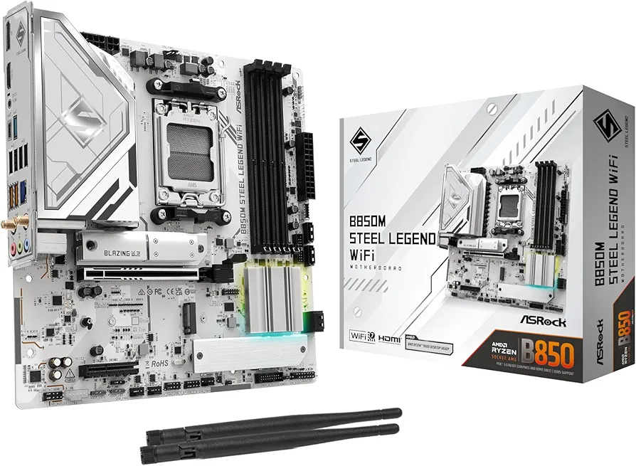 ASRock AMD B850M Steel Legend WiFi 7 Socket AM5 B850 Ryzen DDR5 8000+ (OC) MHz 256GB Micro ATX Motherboard M.2 SATA3 6.0 Gb/s PCIe 5.0 BIOS Flashback