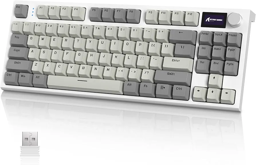 ATTACK SHARK RK86 RGB 75% Wireless Gasket Mechanical Keyboard,Triple Mode Bluetooth5.0/2.4G/USB-C 82 Keys Hot Swappable Gaming Keyboard 4000 mAH Battery w/Knob & 1.2” HD OLED Display,Linear Switches