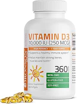 Bronson Vitamin D3 10,000 IU (250 mcg) High Potency – Supports Healthy Immune System, Strong Bones, Muscles & Teeth – Non GMO, 360 Softgels (1 Year Supply)
