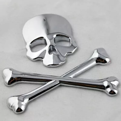 Car Sticker Accessories Metal Skull Head Bone Logo Emblem Sticker Decal Silver