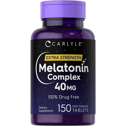 Carlyle Melatonin 40mg Complex | 150 Fast Dissolve Tablets | Extra Strength Support | with Ashwagandha and Chamomile | Vegetarian, Non-GMO, Gluten Free Supplement