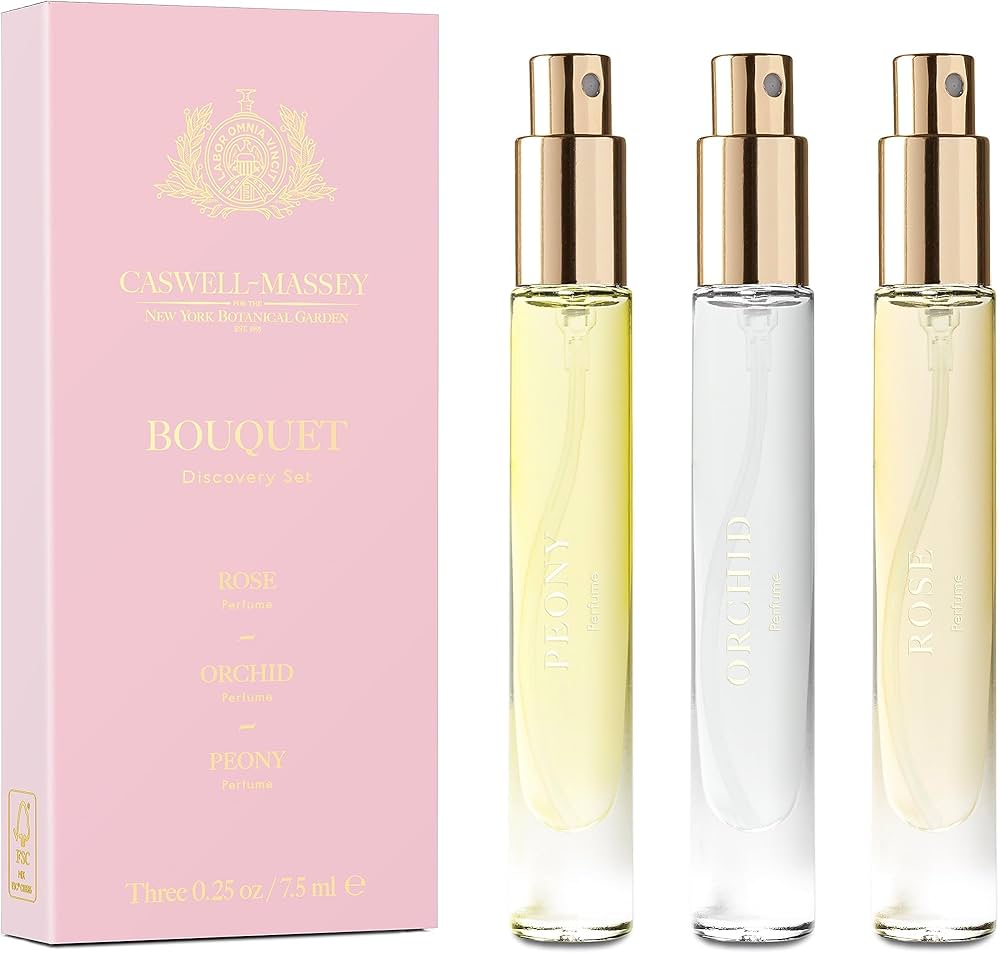 Caswell-Massey Bouquet Discovery Set, Includes Peony, Orchid & Rose, Discover the Beauty of Botanicals, Travel Size Perfume Set, Perfume for Women, 0.25 Fl Oz Each