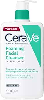 CeraVe Foaming Facial Cleanser, Daily Face Wash for Oily Skin, Hyaluronic Acid + Ceramides + Niacinamide, Fragrance Free & Paraben Free, Non-Drying Oil Control Face Wash, 19 Fluid Ounce