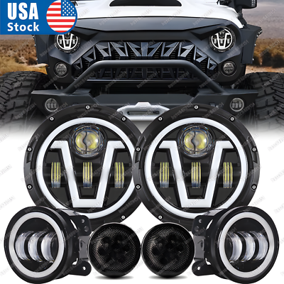 Combo For 2007-18 Jeep Wrangler JK JKU 7” LED Headlights Tail & Halo Fog Lights