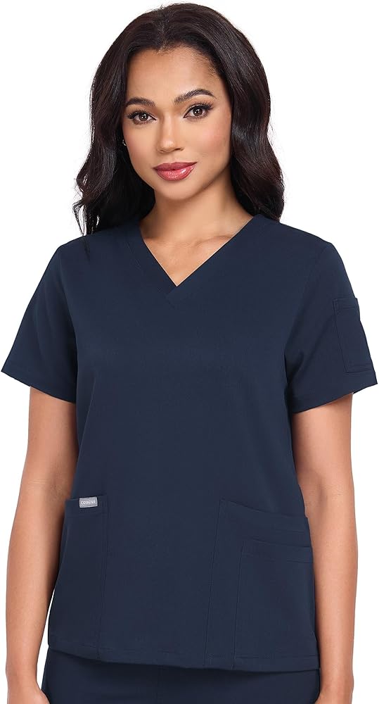 COMENII Scrubs for Women Classic Fit Scrub Tops Women with 4 Pocket, Back Princess Seams Womens Scrubs