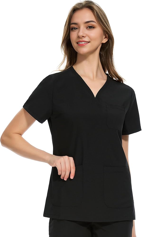 COZYFIT Medical Scrub Tops for Women – Soft Stretch,Curved V-Neck Scrub Tops with 3 Pockets
