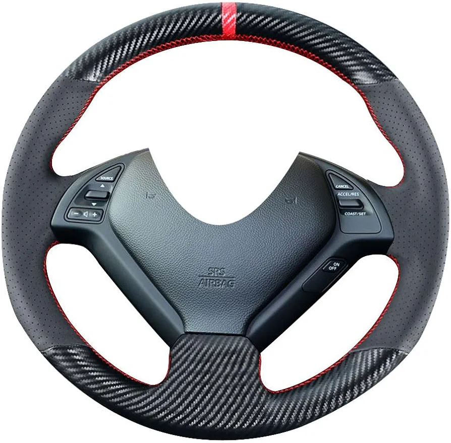 DIY Carbon Fiber Steering Wheel Covers for Infiniti G37 2008-2013 / G25 EX35 EX25 EX37 Q60 2014 QX50 Q40 IPL G G35 Sport 15 inches Stitching Leather Interior Accessories