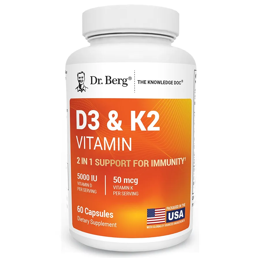 Dr. Berg Vitamin D3 K2 5000 IU with MCT Powder | Powerful 7-in-1 Formulation | 4X Lab-Tested & Verified | High Absorption Formula | K2 D3 Vitamin Supplement – 60 Capsules