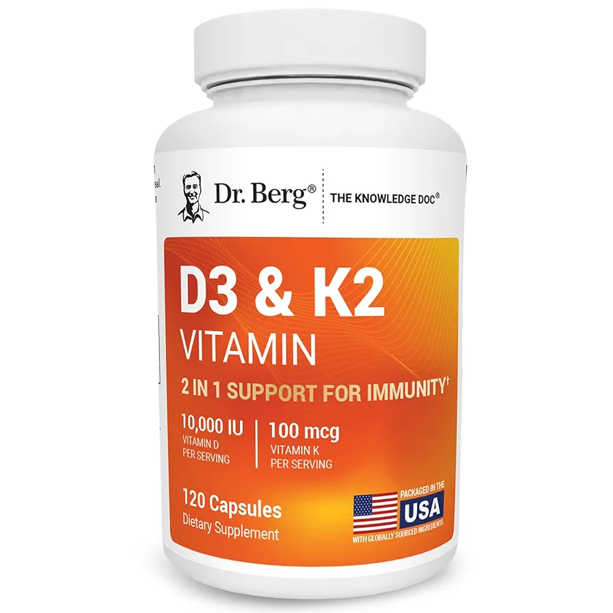 Dr. Berg Vitamin D3 K2 w/MCT Powder – Includes 10,000 IU of Vitamin D3, 100 mcg MK7 Vitamin K2, Purified Bile Salts, Zinc & Magnesium for Ultimate Absorption – K2 D3 Vitamin Supplement – 120 Capsule