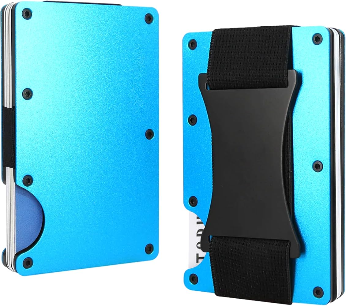 EDGE Men Minimalist Aluminum Wallet with Cash Strap Slim Wallet for Men, Thin as a Rail, Minimalist Aesthetics, Holds up to 12 Cards, RFID Safe, Blocks Chip Readers Turquoise