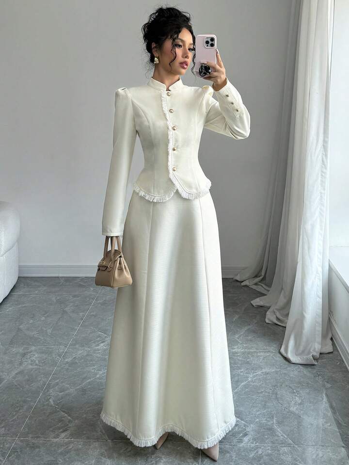 Elenzga مجموعة من 2 قطعة معطف وفستان أنيق مزين بلمسات باتشورك والشرابات للنساء