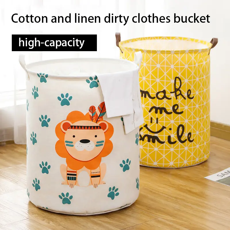 Foldable Laundry Basket Storage Bucket Japanese Cotton Linen Fabric Waterproof Dirty Laundry Toy Storage Basket Dirty Clothes