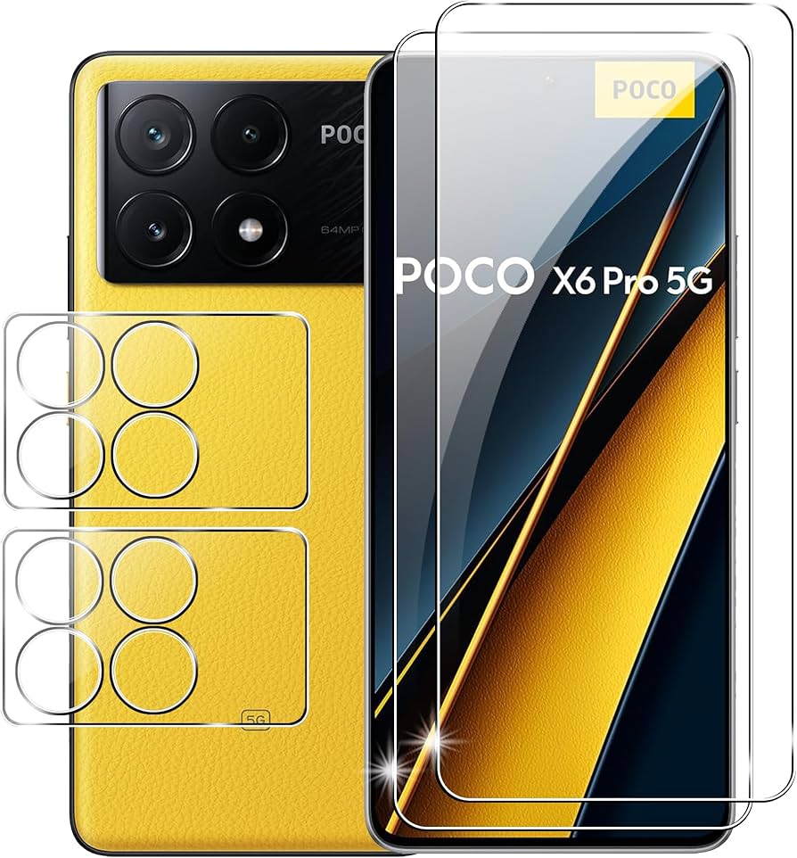 for Xiaomi Poco X6 Pro 5G Screen Protector with Camera Lens Protector, 9H Hardness Anti-Scratch Tempered Glass flim, Case Friendly, Anti-Fingerprint,Anti-Scratch (2+2 PACK)