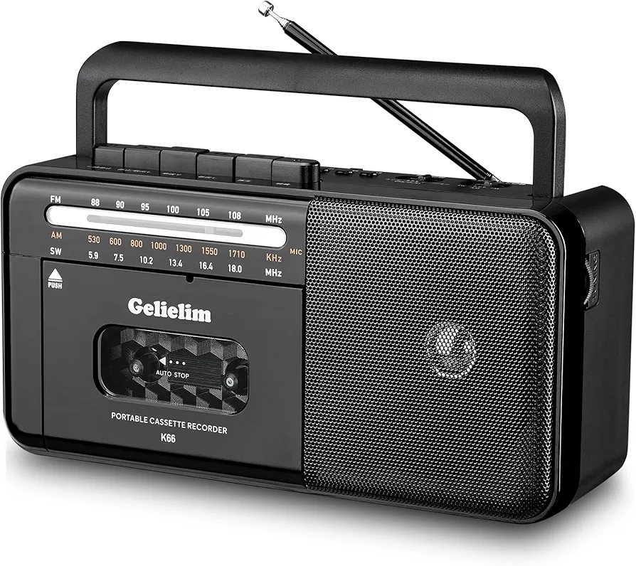Gelielim Cassette Tape Player Bluetooth Boombox, Cassette Player AM/FM/SW Radio Stereo, Tape Player/Recorder with 8W Speaker and Earphone Jack, USB/TF Card Player, AC Powered or Battery Operated