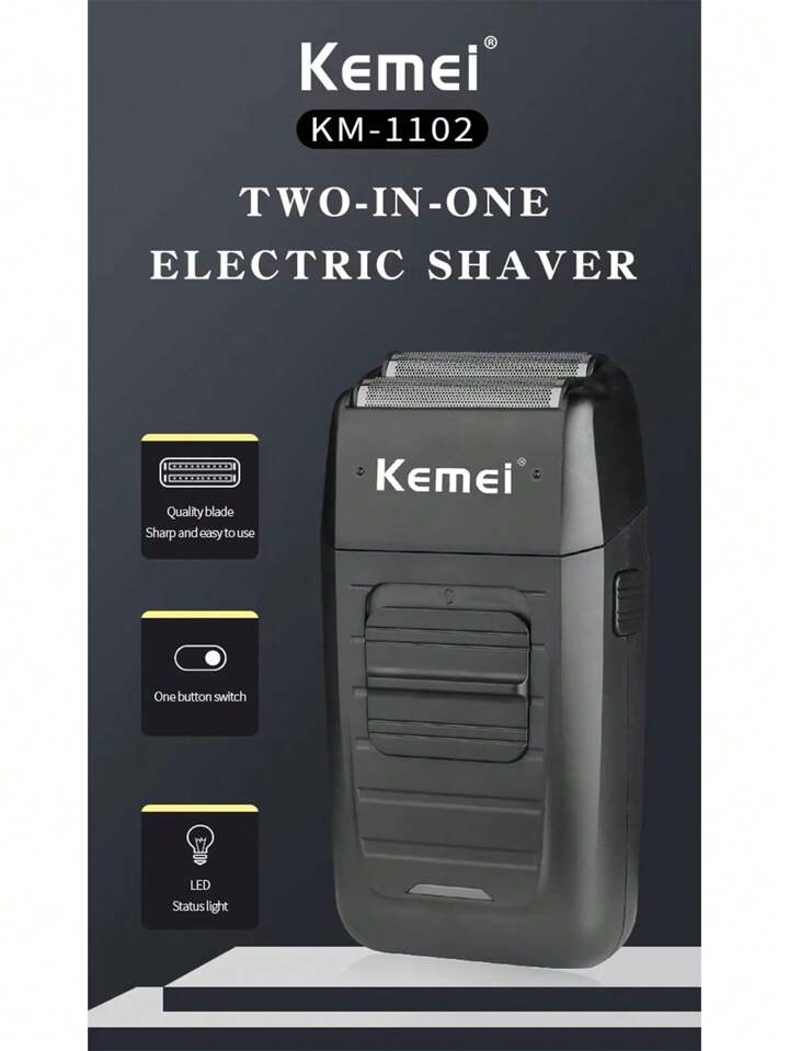 Kemei آلة الحلاقة الكهربائية كيمي Km-1102، ماكينة تشذيب لحية الرجال، آلة حلاقة كهربائية قابلة لإعادة الشحن عبر منفذ USB، للاستخدام في الحالات الرطبة والجافة، مع ماكينة تشذيب الشعر الوجه الجانبية