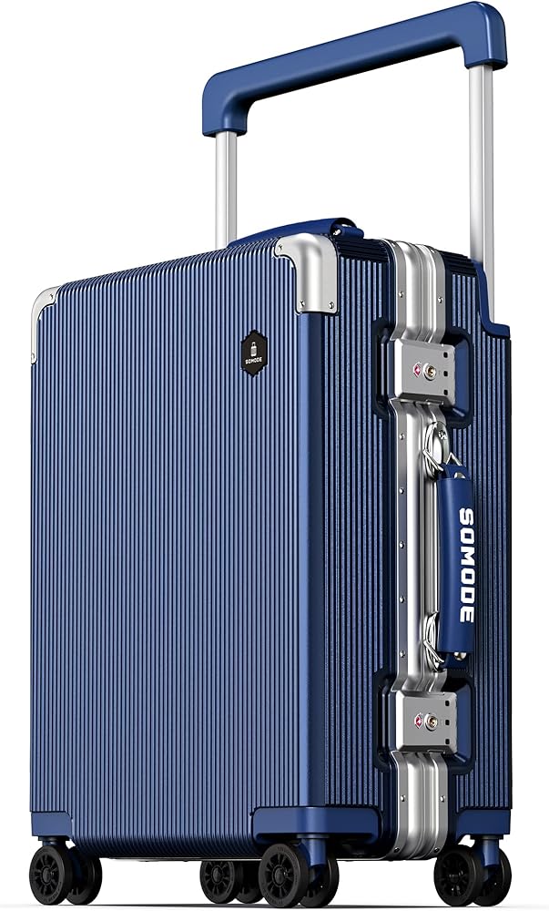 LA SERIES Carry On Luggage 20inch Wide Handle Suitcase, Hardshell with Aluminum Frame, Supper-low noise Spinner Wheels & TSA Lock, Business Travel Carry-On Luggage (002-MATTE BLUE)