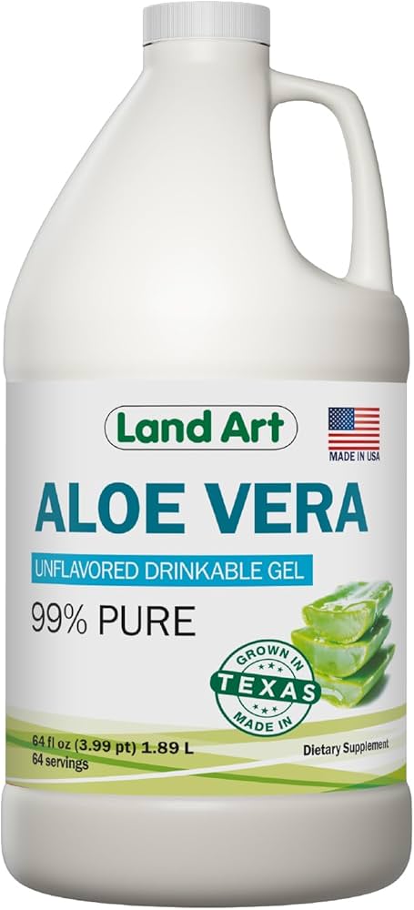 Land Art Pure Aloe Vera Drinkable Gel Unflavored – Cold-Processed Inner Filet – from Organic Fresh Leaves from Texas – for Heartburn Relief – Acid Reflux – 64 fl oz
