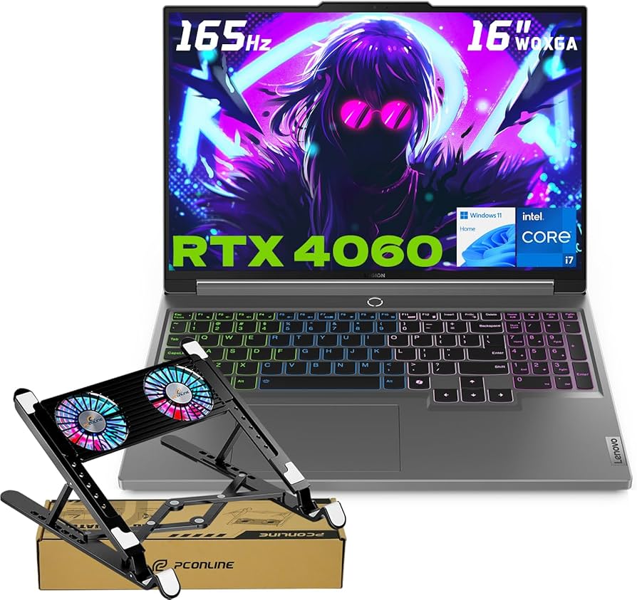 Lenovo Legion 5 Gaming Laptop, 16″ WQXGA 2560×1600 165Hz, Intel i7-14650HX, NVIDIA GeForce RTX 4060, 32GB DDR5 RAM, 1TB SSD, AI-Power, Win11 H, Bundle With PCO Notebook Folding Radiator, Laptop Cooler