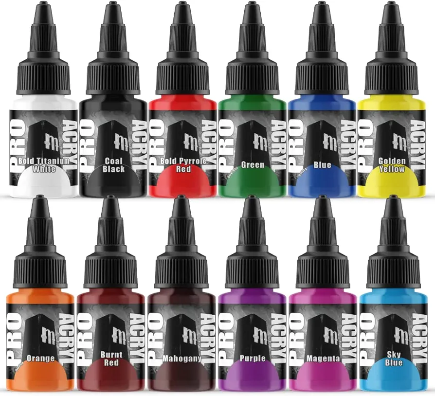 Monument Hobbies Pro Acryl Base Set Acrylic Model Paints for Plastic Models – Miniature Painting, no-clog cap, comes loaded with glass agitator