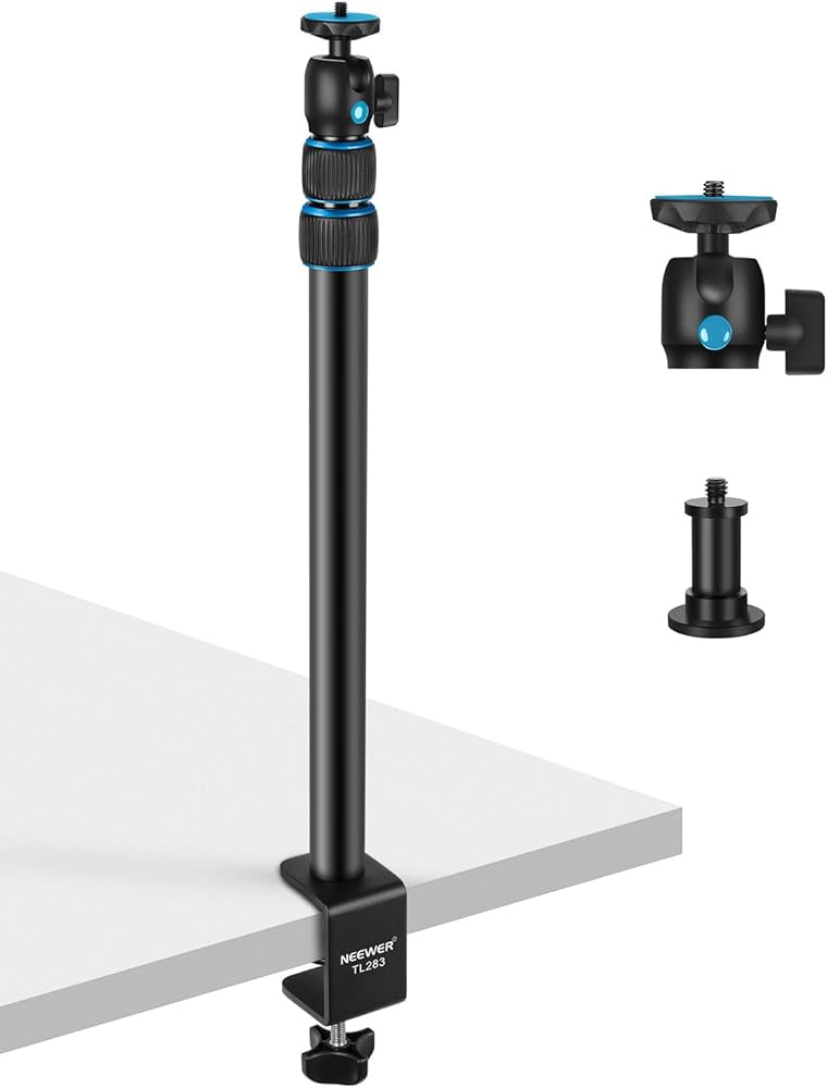 NEEWER Camera Table Mount with Ball Head, 17-40 Inch Adjustable Table Light Tripod with 1/4 Inch Screw and C Clamp for DSLR Camera, Ring Light, Live Stream, Vlog, Maxi Load: 3 kg, TL283 (Blue)