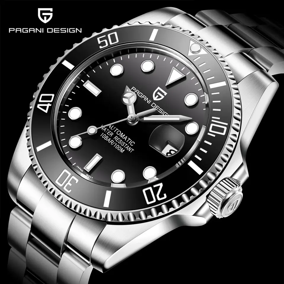 PAGANI DESIGN Stainless Steel Men Mechanical Wristwatches Sapphire Glass Automatic Watch Waterproof Ceramic Bezel Watch For Men