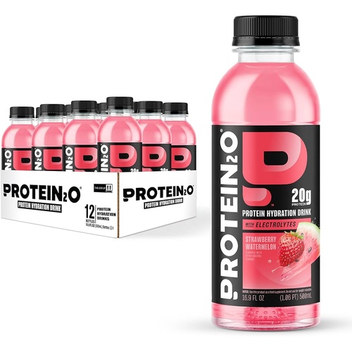 Protein2o 20g Whey Protein Isolate Infused Water Plus Electrolytes, Sugar Free Sports Drink, Ready To Drink, Gluten Free, Lactose Free, Strawberry Watermelon, 16.9 oz Bottle (12 Count)