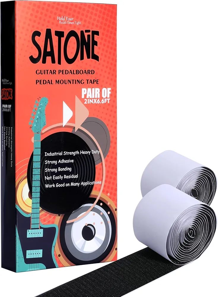SATONE Pedalboard Mounting Tape – Hook and Loop Strips with Adhesive for Guitar Pedal Board, Heavy Duty Pedal Grip Tape – 2IN Wide 6.6FT Long