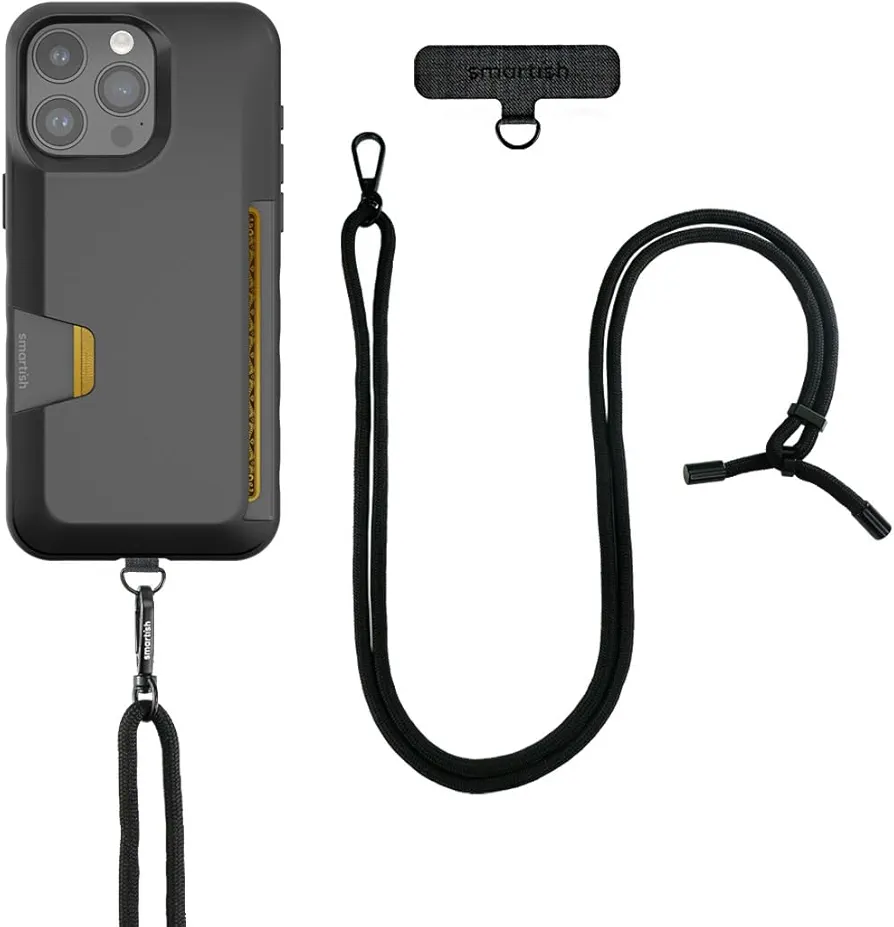 Smartish iPhone 15 Pro Max Wallet Case with Crossbody Lanyard Strap – Wallet Slayer Vol. 1 – [Slim + Protective] Credit Card Holder with Universal Detachable Shoulder Neck Strap – Black Tie Affair