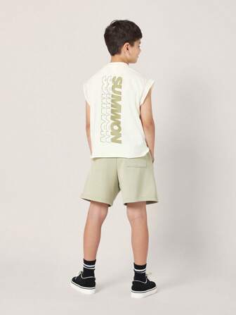 SUMWON مجموعة رياضية صيفية للشباب شاملة كنزة أكمام وصندل مع طباعة رسومات، ملابس كاجوال رياضية، ملابس شارع، وحدة تدريب قطعتين، مجموعة أزياء المراهقين