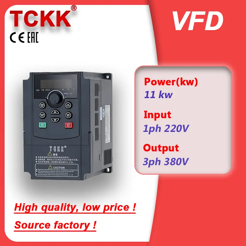 TCKK 11KW VFD Inverter 220V One-phase input 380V Three-phase output 1ph to input to 3ph output