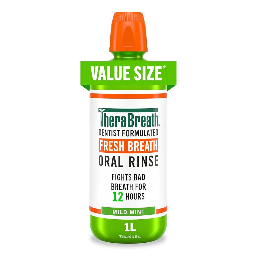 TheraBreath Fresh Breath Mouthwash, Mild Mint, Alcohol-Free, 1 Liter