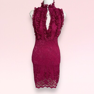 vintage y2k pink ruffle lace frilly coquette fairy boho romantic party dress S