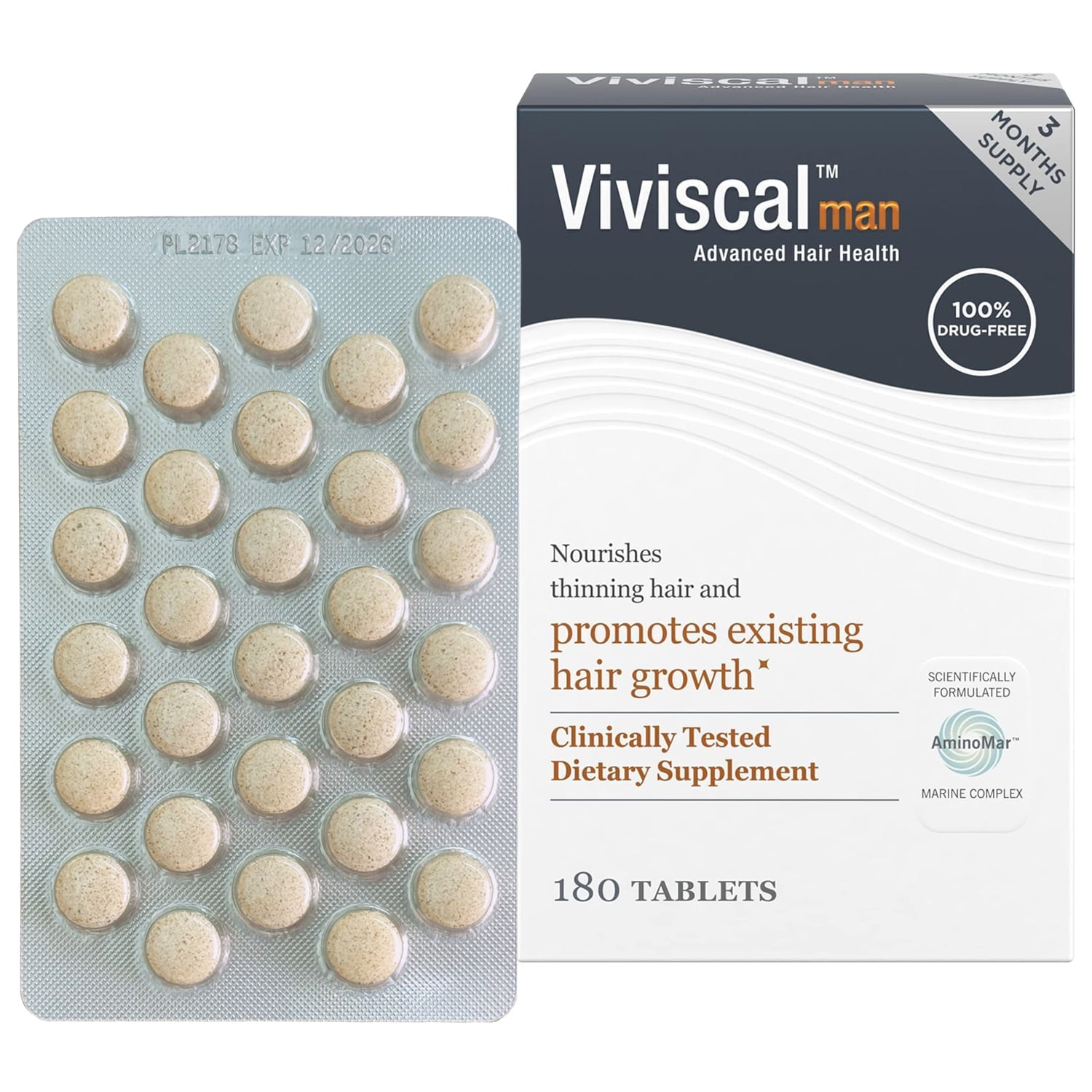 ViviscaI Men’s Hair Growth Supplement 180 Tablets – 3 Month Supply