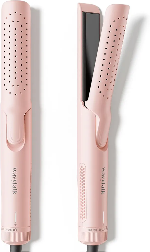 Wavytalk Cool Curl Airflow Styler, 360 °Cooling Air Curling Iron Lock in Style for Lasting Curls, Less Damage, 2 in 1 Hair Straightener and Curler,1 Inch, Anti-Scald for Short Long Hair, Pink