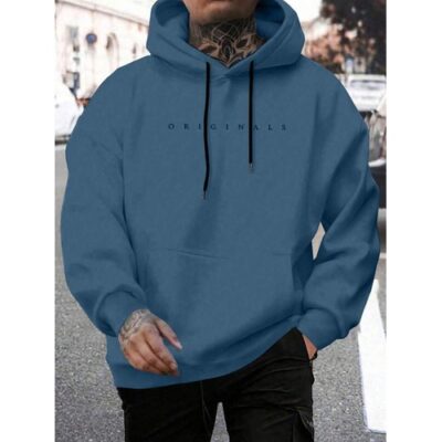 Manfinity Homme قميص ثقيل رياضي بغطاء رأس ذو سحاب وكتابات عادية للرجال، خريف/شتاء