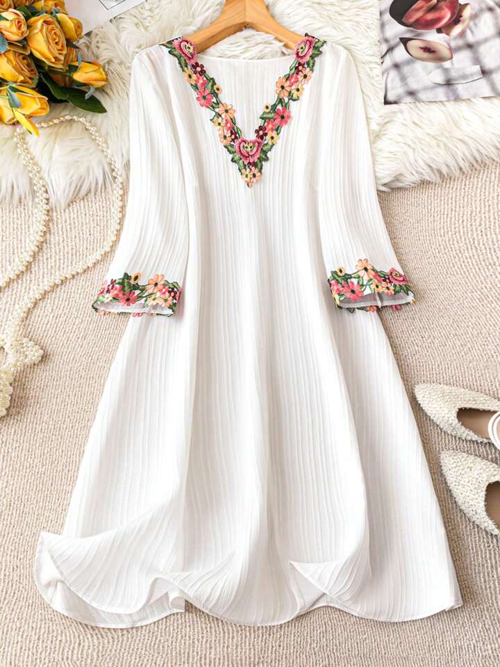 SHEIN LUNE فستان بتصميم الأزهار مع حواف متباينة وتطريز